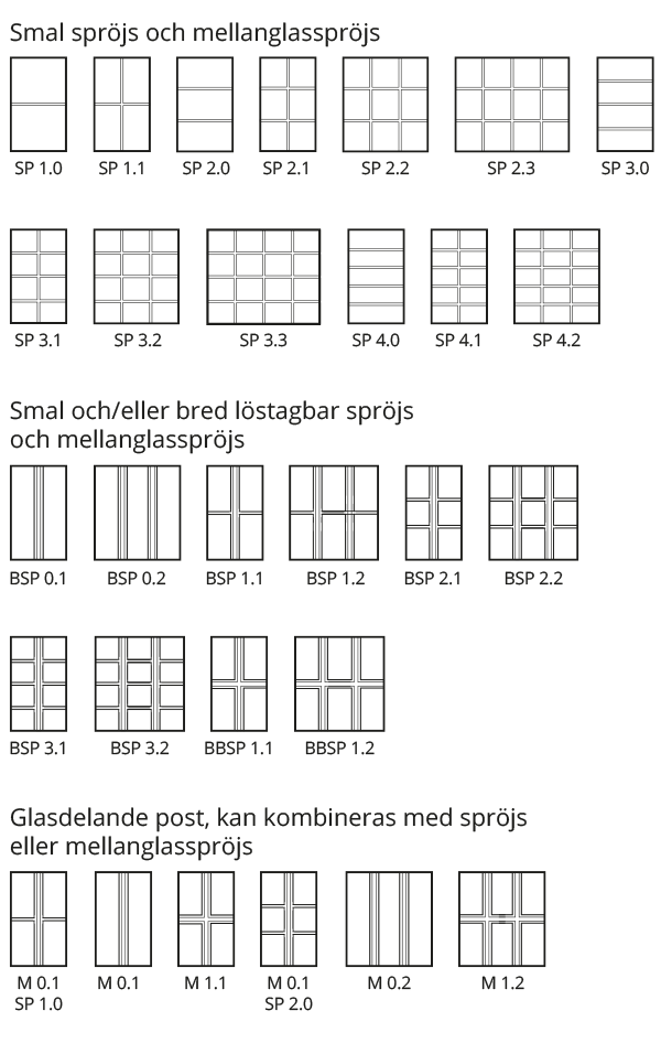 Valmöjligheterna är många och vi kan tillverka de flesta kombinationer för att skapa ett personligt utseende. I vårt designverktyg kan du testa att bygga ditt egna fönster och se vilken spröjskombination som passar dig bäst.
