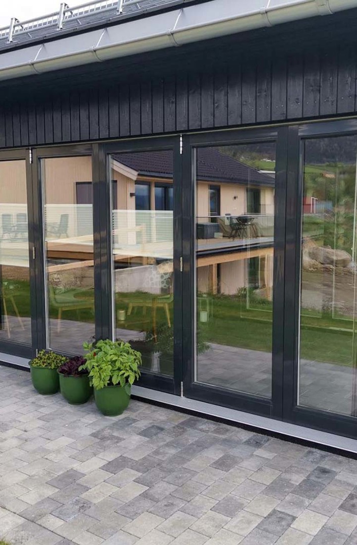 Vikdörrar från Elitfönster med en stomme i trä och väderskydd i form av slitstak aluminium på utsidan. Med en karm i fura och dörrblad i accoya får vikdörrarna en gedigen formstabilitet Du väljer själv om du önskar att öppna vikdörrarna åt höger eller vänster. Oavsett får du alltid en passagedörr för att smidigt kunna gå ut och in de dagar du inte vill öppna hela vikpartiet. Självklart utrustad med endast det bästa i beslagsväg.